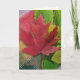Una hoja de arce roja y hojas de Elm verde contrastan con un mantel de color otoñal en la cubierta de esta invitación al picnic.