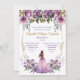 Personaliza y adapta tus propias invitaciones para Quinceañera con esta plantilla de colores lila, púrpura, rosa y dorado.