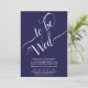 Esta hermosa invitación a la boda es a la vez sencilla y elegante. El diseño azul marino y blanco presenta una caligrafía elegante que dice "to be Wed" en la parte superior 2/3 del lienzo con un texto simple debajo. Diseño minimalista moderno.