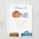 1ª invitación de calabaza de cumpleaños con camioneta azul y diseño de yeso azul, fácil de editar texto.