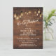 Invitación Pared de madera marrón con luces Edison, Nos casam