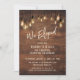 Invitación Pared de madera marrón con luces Edison, Nos escap