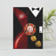 Una pareja elegante de estilo art déco que lleva ropa de etiqueta - ella con un vestido rojo de leopardo con escote bajo y él con un elegante esmoquin negro. La pieza central es una ficha de casino que contiene números de cumpleaños 40 y dados dorados que caen. Esta invitación versátil y de moda es perfecta para cualquier ocasión especial: fiestas de jubilación, cumpleaños importantes, cócteles y cenas, cenas de ensayo, recepciones de boda, aniversarios, eventos semiformales y formales o veladas festivas de vacaciones. Fácil de personalizar, use el botón "Personalizar" arriba para agregar su propio texto. También hay disponibles pegatinas de favor que coinciden. Para preguntas o solicitudes especiales, por favor contacte al diseñador en cheryl@cheryldanielsart.com. Si esta invitación no es exactamente lo que está buscando, todos mis productos pueden ser diseñados a medida para satisfacer sus necesidades específicas. Invitación de "Fiesta de cumpleaños