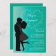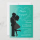 Nuestra moderna pareja de besarse en la Invitación de compromiso de amor o invitación de compromiso es una manera dulce de hacer saber a sus seres queridos que están comprometidos! Nuestra encantadora invitación a la fiesta de compromiso presenta una elegante silueta de una pareja de besos en negro clásico sobre un fondo azul turquesa con un corazón de estrella. Perfecto para una invitación a una fiesta de compromiso o una invitación de compromiso, sólo personalizar con su información y usted está listo para irse! Los artículos que coinciden incluyen la invitación a la ducha de novia, tarjetas de agradecimiento, sellos y más en nuestra tienda! Ilustraciones ©JW