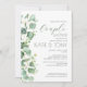 Invite a los invitados a celebrar el amor con esta elegante invitación de ducha de pareja que presenta un suave follaje de eucalipto en acuarela y un diseño moderno y limpio. Diseñada para honrar tanto a la novia como al novio, esta invitación destaca los nombres, los detalles del evento y la información de RSVP en un formato refinado y fácil de leer. El diseño botánico natural crea un aspecto fresco y atemporal, perfecto para celebraciones previas a la boda que unen a familiares y amigos.