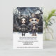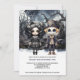 Pareja asustada de Halloween, chica gótica y niño esqueleto En un bosque oscuro embrujado. Invitaciones personalizadas de Ricaso
