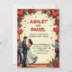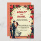 Invitación Pareja romántica retro bailando estilo cómico Boda