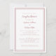 El diseño de la invitación a la celebración de bodas de parejas blancas y rosas de moda, sencillo y polvoriento, presenta un diseño minimalista contemporáneo sencillo con un borde doble de marco en un rosa polvoriento sobre un fondo blanco y fresco. Personalice el diseño con sus detalles en letras y guiones de moda. La espalda coincide con un rosa sólido y polvoriento. Para obtener los mejores resultados, reemplace los detalles de la plantilla con sus propios detalles, dejando espacio entre párrafos, como en el ejemplo, y utilice todas las letras fundas inferiores cuando se especifique. Envíe un correo electrónico a invitationsuites@gmail.com con preguntas o solicitudes de personalizados.