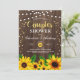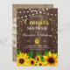 Todos los textos son editables, excepto el dorado "BABY" Hermoso girasol acuarela sobre fondo rústico de madera con confeti dorado