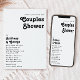 Esta moderna invitación a la ducha de parejas con letras retro es perfecta para su exclusiva y moderna ducha de pareja bohemia de verano. La letra es un elegante tipo de letra negro de moda 70, que da a este diseño un diseño clásico minimalista de vibraciones hippie. Puede agregar sus propios gráficos o imágenes si desea personalizares. Por favor siéntase libre de contactar con cualquier pregunta sobre el diseño del producto; estamos encantados de ayudar!