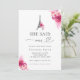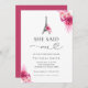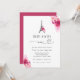 Sorprenda a sus seres queridos con esta encantadora invitación, con flores de color rosa brillante, torre de eiffel y detalles editables. Personalizar fácilmente haciendo clic en la opción "personalizar".