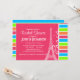 Invitación París rosado; arco iris retro neón