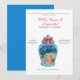 Celebre el cumpleaños número 250 de Estados Unidos con estilo con nuestra encantadora invitación "BBQ, Cervezas y Fuegos Artificiales". Este diseño presenta un hermoso jarrón de jengibre patriótico con un lazo rojo clásico, que muestra a una joven pareja y su perro disfrutando de un picnic clásico de barbacoa totalmente americano. Es la combinación perfecta de elegancia granmillenaria y diversión en el patio trasero.
