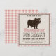 ¿Pensando en tener una barbacoa en el patio trasero este verano? Esta invitación de "Puerco asado en el patio trasero de Smokey" podría ayudar. Fáciles plantillas de texto para reformular. Smokey es una ilustración de cerdo negro en la mitad superior de la tarjeta, rodeado de un borde delgado negro, con un fondo a cuadros rosado. Perfecto para fiestas junto a la piscina, fiesta de graduación, fiesta de compromiso de boda "brindis y asado", evento de bienvenida a casa o cumpleaños especiales. Disfruta con tu evento favorito en el patio trasero.