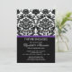Nuestra elegante invitación de compromiso cuenta con un hermoso damasco blanco y negro con una banda Eggplant Purple. Perfecto para una invitación a una fiesta de compromiso o una invitación de compromiso! Sólo personalizar con tu información y estás listo para ir! Los artículos que coinciden incluyen la invitación a la ducha nupcial, tarjetas de agradecimiento, sellos y más en nuestra tienda!