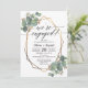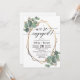 Se trata de una hermosa invitación a una fiesta de compromiso boda con un diseño de marco geométrico de oro y eucalipto.