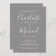 Con nombres de estilo característico, esta sencilla, elegante y moderna invitación a la fiesta de compromiso se puede personalizar con los detalles especiales de su evento en letras blancas en moda sobre un fondo gris. Diseñado por Thisisnotme©