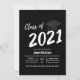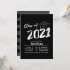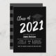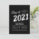 Invitación a la fiesta clásica de graduación en blanco y negro con tapón de graduación.