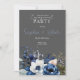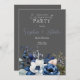 Invitación Partido Compromiso de Gris Floral Azul, Blanco y V