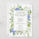 Esta invitación a la fiesta de compromiso con hortensias azules de varios matices, follaje fluido y coordinación de la espalda con rayas azules es moderna y caprichosa. ¡Es perfecto para cualquiera que celebre un compromiso de primavera o verano! En segundos puedes ver tus hermosas invitaciones. Las plantillas son muy fáciles de usar. Simplemente elija Personalizar esta plantilla, escriba su información y voilà - sus invitaciones únicas y espléndidas están listas!