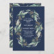 La vegetación dorada fue la bandera azul marino elegante invitaciones a la fiesta de compromiso.