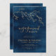 Invitación a la fiesta de compromiso botánico Navy Blue & Gold