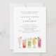 Lleve el espíritu vibrante de las islas a su celebración con nuestra invitación a la fiesta de compromiso de Bodas de Cocktails Tropicales Modernos. Con audaces acentos botánicos, colores soleados y tipografía contemporánea, esta invitación capta la esencia de una velada tropical relajada pero elegante. Perfecto para reuniones en la playa, traseros o fiestas de compromiso inspiradas en el destino, invita a los huéspedes a beber, mezclar y celebrar el amor bajo las palmas. Personalice la redacción para que se adapte a su evento y establezca el tono para una celebración de cócteles divertida y moderna con un toque exuberante y tropical.