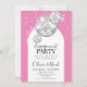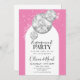 La invitación a la fiesta de compromiso de bolas purpurinas en rosa caliente con una bola de disco es tan de moda para la pareja moderna que se involucra