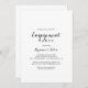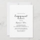 Esta moderna invitación a la fiesta de compromiso caligráfico es perfecta para un evento rústico. El diseño, sencillo y elegante, presenta una tipografía de escritura clásica y elegante en blanco y negro.