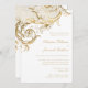 Invite a sus invitados a la fiesta de compromiso con estilo con esta elegante invitación a bodas de damasco floral de oro fino con detalles de su fiesta en caligrafía de escritura de oro falso sobre un fondo blanco clásico. ¡Mis mejores deseos para su boda y matrimonio! Diseñado por Susan Coffey.