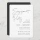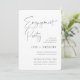 Invite a los huéspedes a celebrar a la pareja feliz con estas modernas y mínimas invitaciones a la ducha en blanco y negro clásico. El diseño sencillo incluye la "fiesta de compromiso" en escritura manuscrita casual, con los detalles de tu evento alineados en la parte inferior derecha en letras negras de cenizas suaves modernas.
