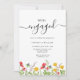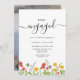 Elegante acuarela flor silvestre "estamos comprometidos" carta de invitación de fiesta de compromiso con la foto de la pareja en la parte trasera, perfecta para fiestas de primavera, verano, jardín, compromiso en el patio trasero.