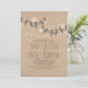 la encantadora invitación a la fiesta de compromiso incluye una cadena de luces colgando de las ramas de los árboles con flores blancas y flores. Aspecto casual, romántico estilo de papel kraft textura de fondo invitación para la celebración de compromiso moderno pero vintage. Invitación perfecta para fiesta rústico de granero, ducha de compromiso al aire libre o para pareja que planee una fiesta de compromiso en el patio trasero o jardín de su casa.