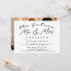 Moderna, moderna y sencilla invitación a la fiesta de compromiso incluye la escritura '' future mr and mrs'' en letras manuscritas, nombres futuros de parejas y detalles de fiestas. Añadir la foto favorita de la pareja en la parte de atrás.