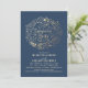 La marina y el oro - aliento de bebé - floral invitación a la fiesta de compromiso con el ramo.