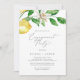 Esta moderna invitación a la fiesta de compromiso con el jardín de limón es perfecta para un evento de compromiso de primavera o verano. El diseño rústico mediterráneo presenta limones acuáticos brillantes y hermosos con flores blancas bohemias y elegantes hojas verdes.