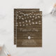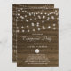 Invitación única y caprichosa de la fiesta de compromiso con luz blanca de cuerda sobre fondo falso de madera. Esta invitación a la fiesta de compromiso con el personalizable es perfecta para eventos rústicos, otoñales y elegantes.