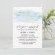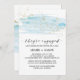 Esta tarjeta de invitación a la fiesta de compromiso azul y brillante dorado es perfecta para un fiesta elegante. El lujoso diseño presenta una textura de color azul claro con un toque de purpurina falso dorado y un moderno tipo de letra de escritura caligráfica. Nota: Este diseño no tiene purpurina de oro real. Es un gráfico de alta calidad hecho para parecerse al brillo dorado.