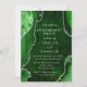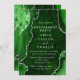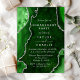 Esta elegante y glamorosa invitación a la fiesta de compromiso incluye un fondo de mármol agate verde con falsos acentos purpurinas de plata. El texto combina el guión manuscrito y las fuentes sans serif modernas para un aspecto elegante y sofisticado. Esto será perfecto para las fiestas de otoño e invierno.