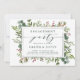 Esta invitación a la fiesta de compromiso incluye eucaliptos de color de agua pintados, hojas verdes, bayas rojas, ramas de pino y un rectángulo verde con caligrafía elegante. Para una personalización más avanzada de este diseño, haga clic en el enlace "personalizar más adelante". También están disponibles los elementos coincidentes.