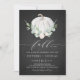 ¡Enamorado! Celebra con esta invitación rústica y caprichosa de la fiesta de compromiso. Cuenta con ilustraciones acuáticos de calabaza blanca, vegetación y flores blancas con un bonito fondo de pizarra. Personalice agregando nombres, fecha, hora, lugar y otros detalles del evento. Esta invitación de calabaza es perfecta para fiestas de compromiso de otoño.