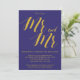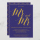 Una invitación a una fiesta de compromiso rústico de moda, presenta al "Sr. y al Sr." con letras de guión en color oro sobre fondo azul cobalto. Todos tus detalles se escriben en un hermoso error tipográfico. El papel perfecto para esta invitación es el kraft artesano, dependiendo del tipo de papel que elija el color puede variar. Esta invitación a la fiesta de compromiso es totalmente personalizable, estilos de fuente, color de fondo, diseño, color, avísenme si tiene alguna solicitud especial. franqueo de EE. UU. y sobre forrado disponibles