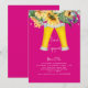 Invitación a la fiesta de compromiso de girasoles y luces. Cerveza. Texto dorado. Invitación. Fucsia brillante.