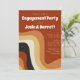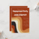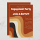Esta groovy y retro invitación a la fiesta de compromiso incluye líneas onduladas en tostado, marrón y naranja, que recuerdan a los años 70 y al estilo de vida hippie. Las parejas de moda invitan a bañarse con un guion blanco funky junto a las líneas curvas abstractas. Groove junto con esta divertida tarjeta de tono de tierra.