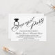 © Socialite Designs. Nuestro hermoso guión / caligrafía de compromiso de la parte de texto, con el texto negro sobre fondo blanco, y el elemento de diseño del anillo de diamante añaden un toque de elegancia simple a esta invitación de la parte de compromiso. Reemplace fácilmente nuestro texto de plantilla con su información especial sobre eventos. El anillo de diamante puede ser redimensionado, movido o borrado para adaptarse a usted.