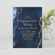 Invitación de la fiesta de compromiso de la banda de oro azul de mármol moderno.