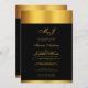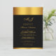Invite a los invitados de la fiesta de compromiso de su boda con estilo con esta elegante invitación monogramada personalizado. El diseño elegante presenta originales iniciales de monograma dorado en caligrafía, junto con todos los detalles de su boda para personalizar bordeado con un brillante oro falso sobre un fondo negro. ¡Mis mejores deseos para su boda y matrimonio! Diseñado por Susan Coffey.