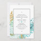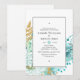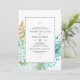 Ornate invitación a la fiesta de compromiso floral con menta pastel con acentos de personalizable dorado a los detalles de tu evento.