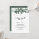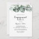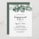 Esta invitación a la fiesta de compromiso floral blanca y verde tropical es perfecta para un evento rústico. El diseño incluye ramos de hojas de palmera verdes con flores blancas adorables.