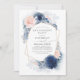 Flores turbias y azul marino elegantes invitaciones a la fiesta de compromiso